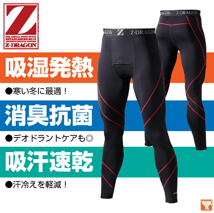 Jichodo 自重堂 Z-DRAGON ロングパンツ 商品の特長 吸汗速乾、消臭&抗菌の機能も 持ち合わせたハイパフォーマンス インナーウェア! 吸湿発熱加工素材で、寒い季節を サポートしてくれるアイテムです。